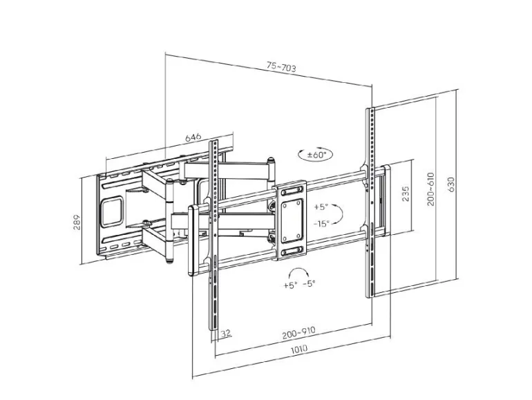 – Regulowana odległość od ściany: od 75 do 703 mm