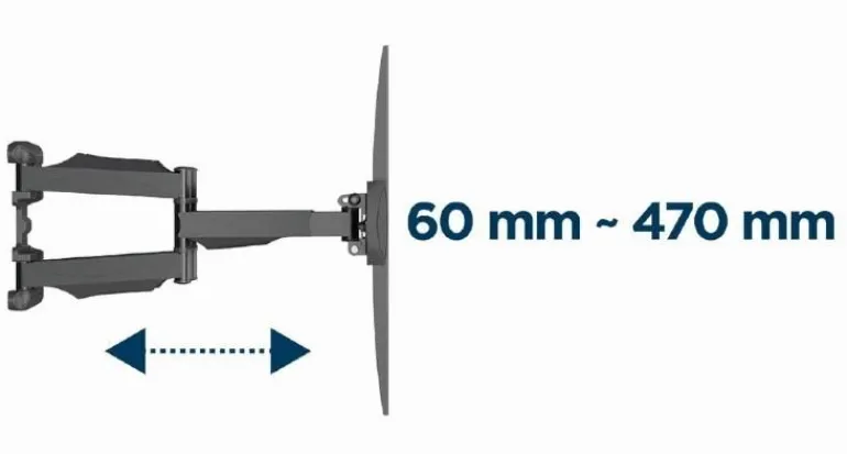 Uchwyt pozwala na regulację odległości od ściany od 60 do 470 mm.