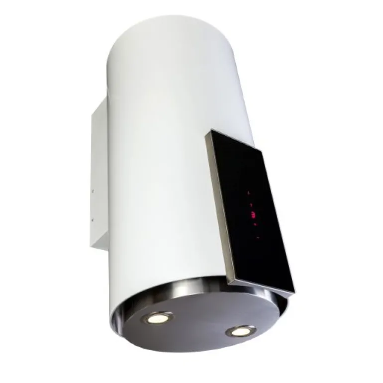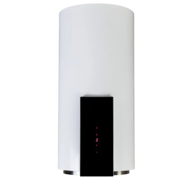 Okap kominowy Tube P Glass White to nowoczesne urządzenie w kształcie cylindra wykonanego z lakierowanej na biały kolor nierdzewnej stali. Powłoka lakiernicza jest trwała oraz odporna na wysoką temperaturę, korozję, chemię i uszkodzenia mechaniczne. Na froncie urządzenia znalazł się elegancki panel z czarnego hartowanego szkła z funkcją Touch Control, czyli sterowania za pomocą dotyku. To bardzo praktyczne rozwiązanie bowiem gładka powierzchnia szkła jest łatwa w czyszczeniu.