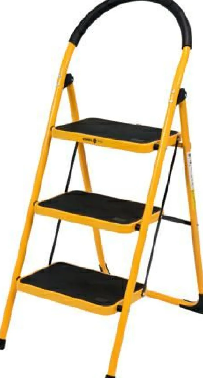 Drabina posiada 3 stopnie o wymiarze 36x26cm, które dodatkowo posiadają podkładki anty-poślizgowe. Dzięki temu pozwala pewnie i stabilnie stanąć na niej bez obawy o ześlizgnięcie się czy potknięcie. Dodatkowy wspornik ochronny u góry drabiny z miękką otuliną gąbkową zabezpiecza przed spadnięciem, a jednocześnie jest bardzo wygodny do przenoszenia.