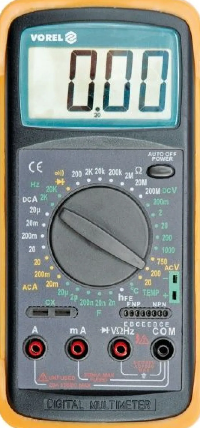 Kompaktowy cyfrowy miernik uniwersalny marki Vorel.