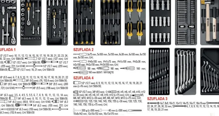 Szafka serwisowa zawiera 177 specjalnie wyselekcjonowanych narzędzi.