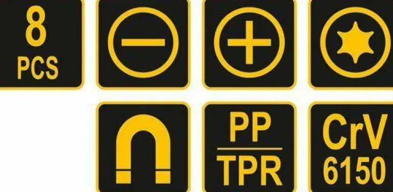 8-elementowy zestaw długich wkrętaków wykonanych z materiałów wysokiej jakości. Przeznaczony do prac montażowych w przemyśle i rzemiośle.
