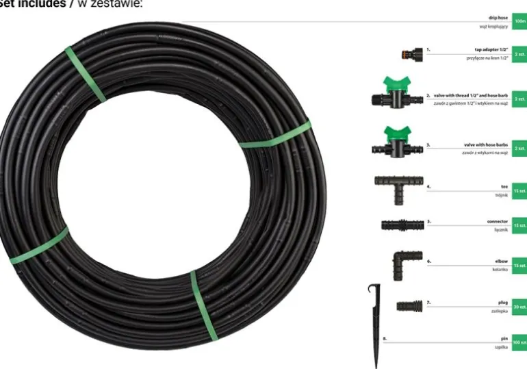 Zestaw z wężem kroplującym WATER FLOW DRIP -100m