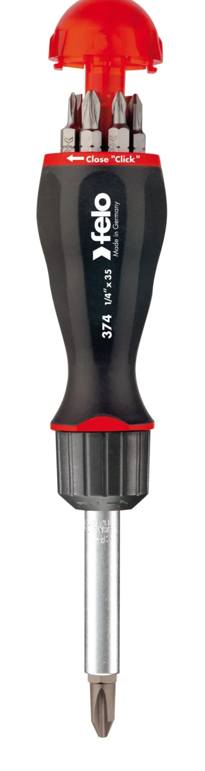 Tyle możliwości w jednej ręce! Poznaj praktyczny wkrętak Felo na blistrze z mechanizmem grzechotkowym, który w rękojeści w magazynku zawiera aż 8 bitów!