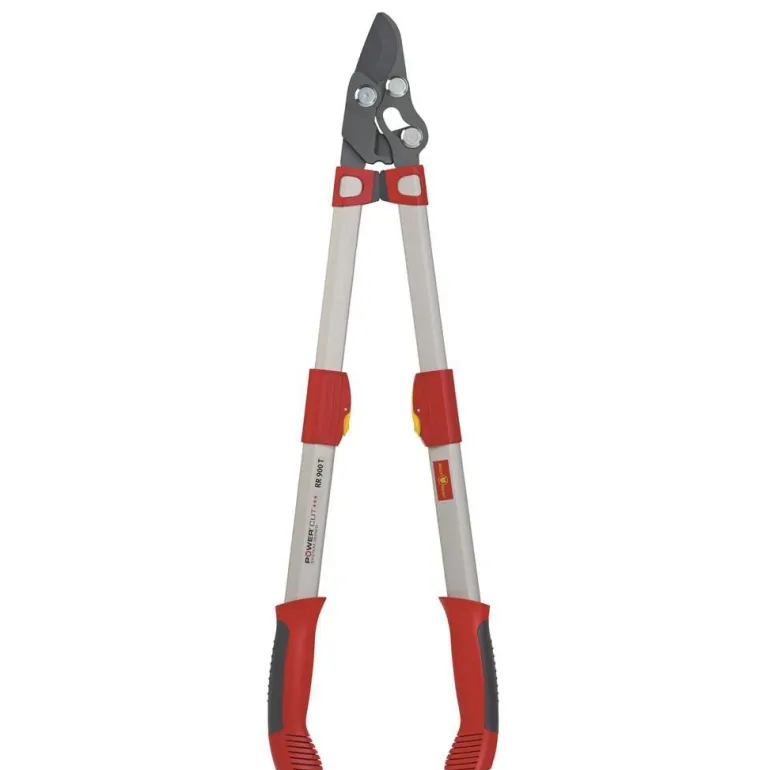 Dwuręczny sekator dwuostrzowy Premium Plus RR 900 T to idealne narzędzie do precyzyjnego cięcia gałęzi o średnicy do 50 mm. Ostrza narzędzia pokryte są powłoką antyadhezyjną chroniącą przed pokryciem ostrzy klejącym sokiem drzew, dzięki czemu każde cięcie przychodzi lekko i sprawnie. Dzięki nowemu rozwiązaniu zastosowaniu w głowicy tnącej uzyskaliśmy 4-krotnie lepsze przełożenie mocy niż w zwykłych sekatorach. Ergonomiczny, anodowany uchwyt zakończony jest wygodnymi rączkami pokrytymi tworzywem oraz teleskopową regulacją długości Gumowe ograniczniki wewnątrz uchwytu chronią dłonie użytkownika przed uderzeniem oraz asystują w czasie pracy zapewniając maksymalny komfort. Sekatory z serii POWER CUT zbudowane są z wielu wymiennych elementów, dzięki czemu są niezwykle proste w utrzymaniu. Długość całkowita sekatora regulowana jest w zakresie od 650 do 900 mm.