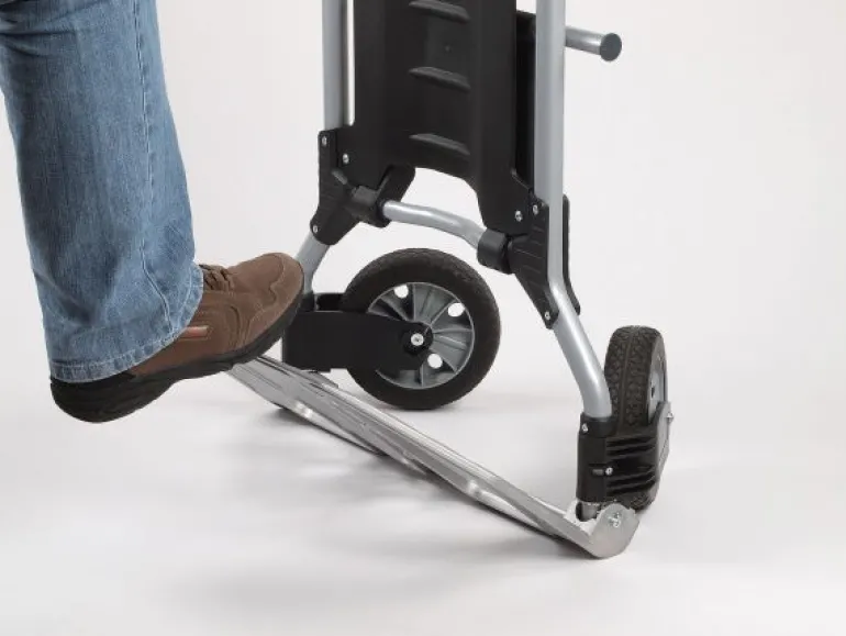 – mimo dużego udźwigu do 200 kg, dzięki specjalnie opracowanemu mechanizmowi wózek łatwo się składa, co daje możliwość jego komfortowego przechowywania