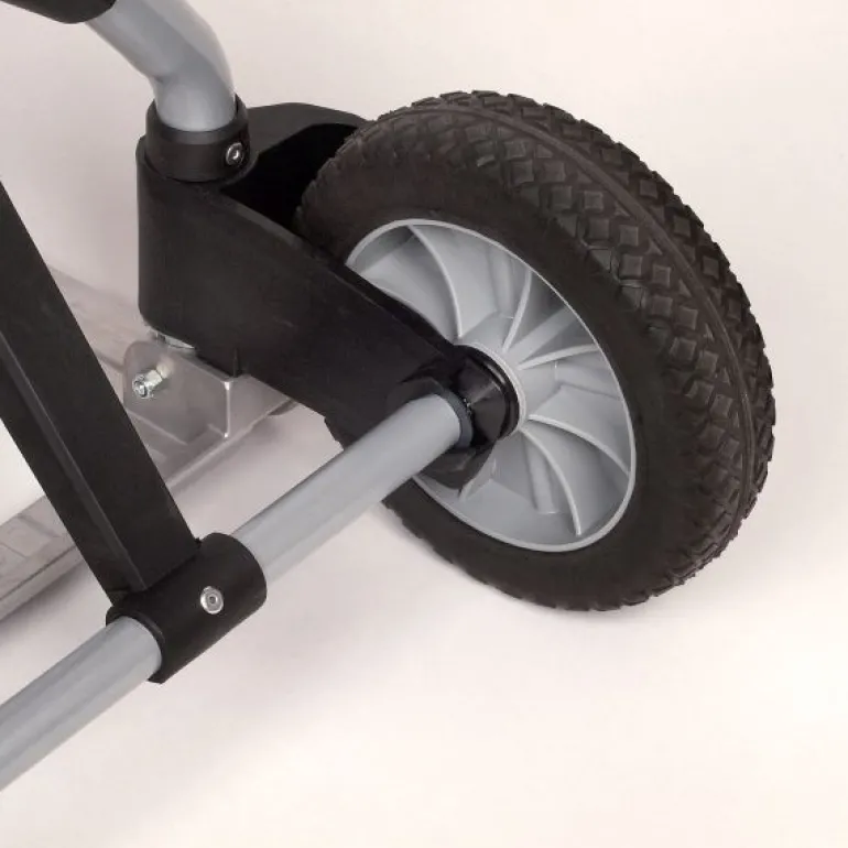– łatwe i wygodne przewożenie ładunków dzięki dużym kołom wyposażonym w pełne opony oraz dwa lekkobieżne łożyska kulkowe