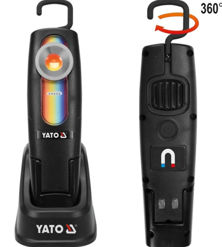 Wydajne źródło COB LED zapewnia również niespotykany wśród zwykłych lamp warsztatowych akumulatorowych strumień świetlny o mocy aż 400 lm. Lampa pracuje w dwóch trybach świecenia.
