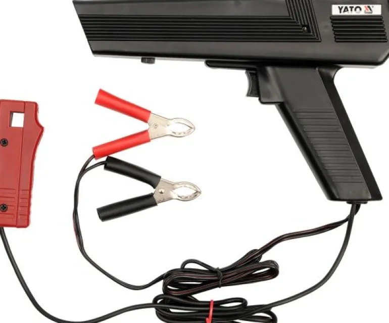 Lampa stroboskopowa profesjonalnej marki Yato. Przeznaczenie: serwis motoryzacyjny, kontrola i regulacja kąta wyprzedzenia zapłonu w silnikach z zapłonem iskrowym. Regulacja jest możliwa w silnikach z mechanicznym rozdzielaczem zapłonu.