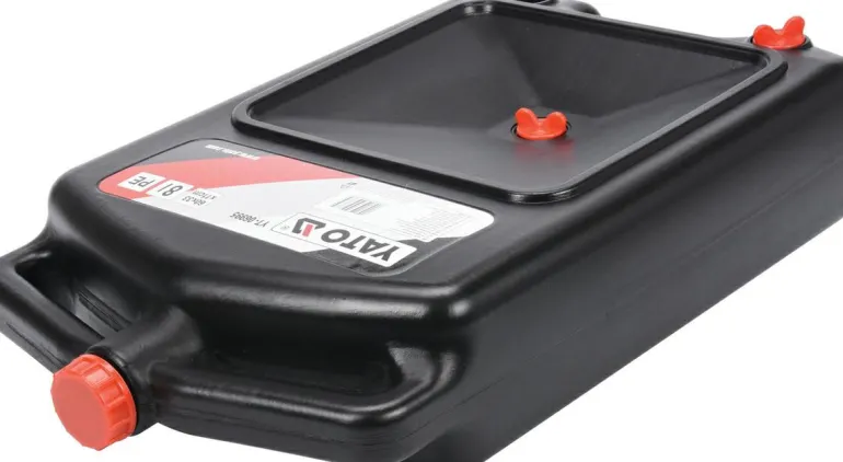 Lekki, zamykany pojemnik przeznaczony do zlewania zużytego oleju lub innych płynów eksploatacyjnych.