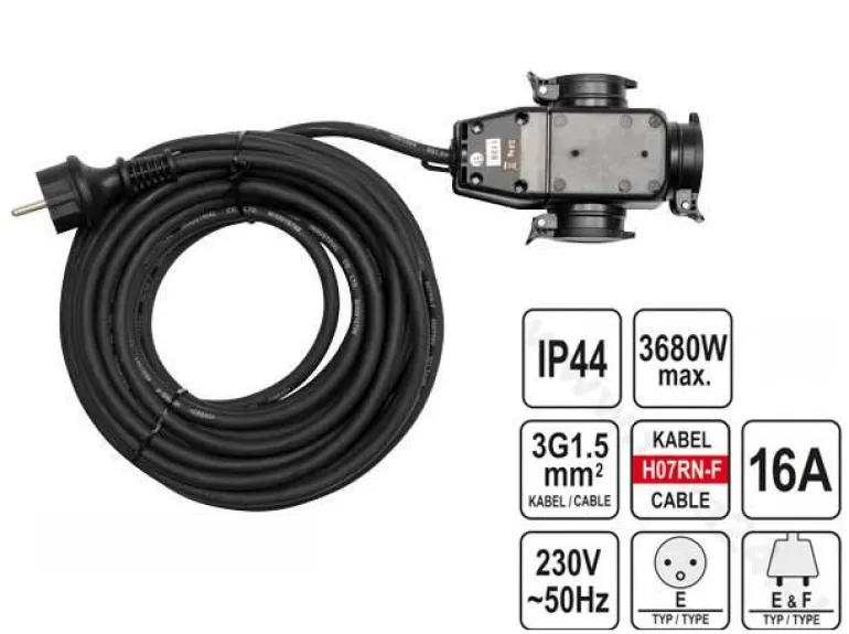 YATO PRZEDŁUŻACZ Z ROZGAŁĘŹNIKIEM 20m 3×1,5mm2 IP44 16A H07RN-F 81162