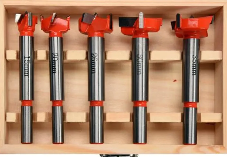 Zestaw wierteł do drewna pod zawiasy marki YATO YT-33015. Przeznaczone do wiercenia precyzyjnych otworów bez szarpania krawędzi w miękkim drewnie, sklejce, tworzywach sztucznych. • wykonane z hartowanej, wysokogatunkowej stali • widia ze stali YG8 • wiercenie w dowolnym kierunku.