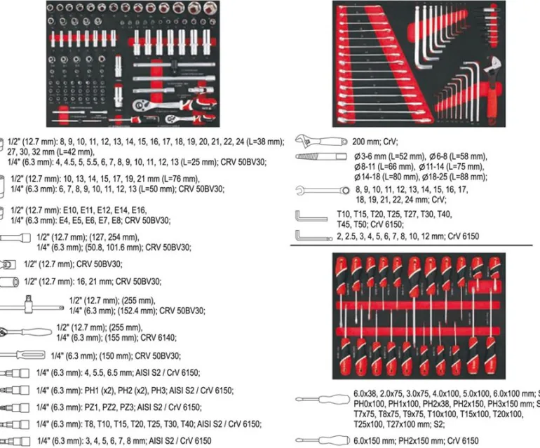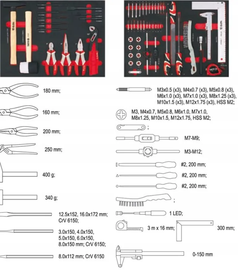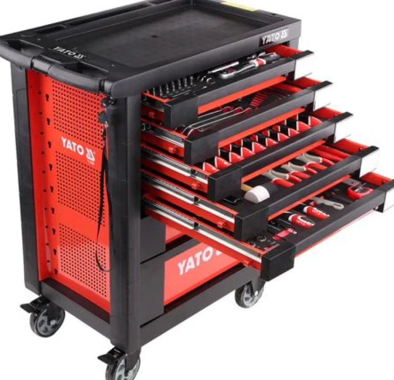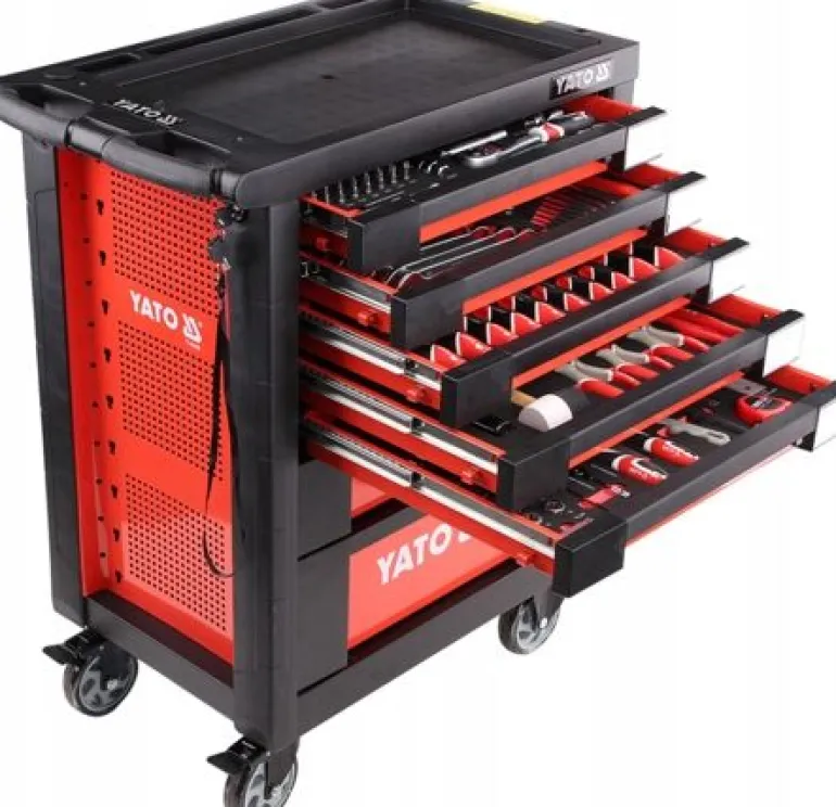 Wyposażona jest w 7 szuflad na prowadnicach kulkowych. 5 górnych szuflad zawiera 211 starannie dobranych narzędzi.