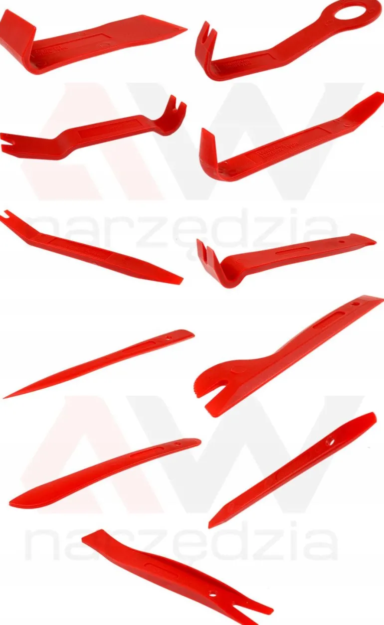 Zestaw zawiera pięć elementów umożliwiający szybki demontaż tapicerki z każdego wnętrza samochodu.