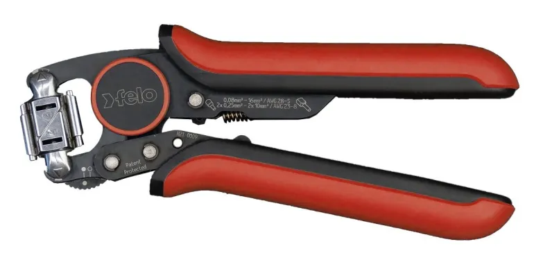 Obrotowa 360° głowica zaciskająca. Do obróbki tulejek z izolacją jak i bez do długości 18 mm w zakresie od 0,08 do 16,0 mm² oraz do tulejek podwójnych od 2x 0,25 do 2x 10,0 mm²; automatycznie dopasowują się do przekroju tulejek. Wykonane ze specjalnej stali hartowanej. Określone szczególnie obciążone części, są dodatkowo specjalnie poddawane obróbce cieplnej. Dwukomponentowe, ergonomiczne, miękkie rękojeści zapewniają pewność chwytu oraz wygodę. Szczypce przystosowane zarówno dla osób lewo jak i praworęcznych. Kompaktowa konstrukcja doskonale sprawdza się w trudno dostępnych miejscach.