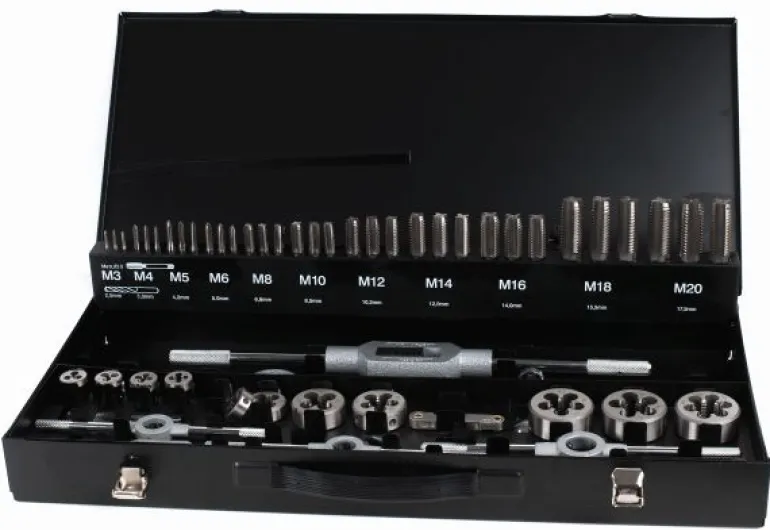 – gwintowniki DIN 352 (po 3 szt.): M3, M4, M5, M6, M8, M10, M12, M14, M16, M18, M20