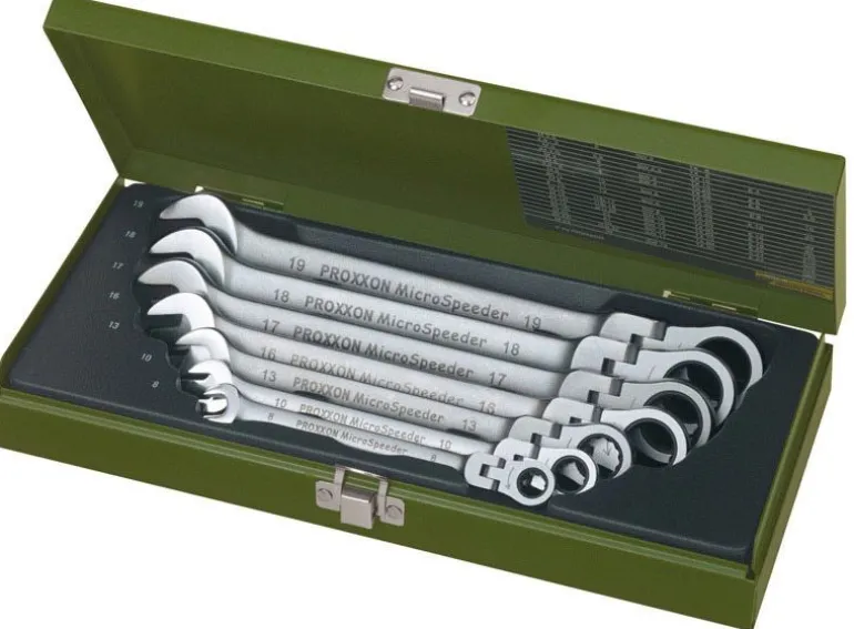 Profesjonalny zestaw PROXXON MicroSpeeder, 7-części. Skład zestawu: SW 8 – 10 –13 –16 – 17 – 18 oraz 19. Pakowany w stabilnej, metalowej walizce.