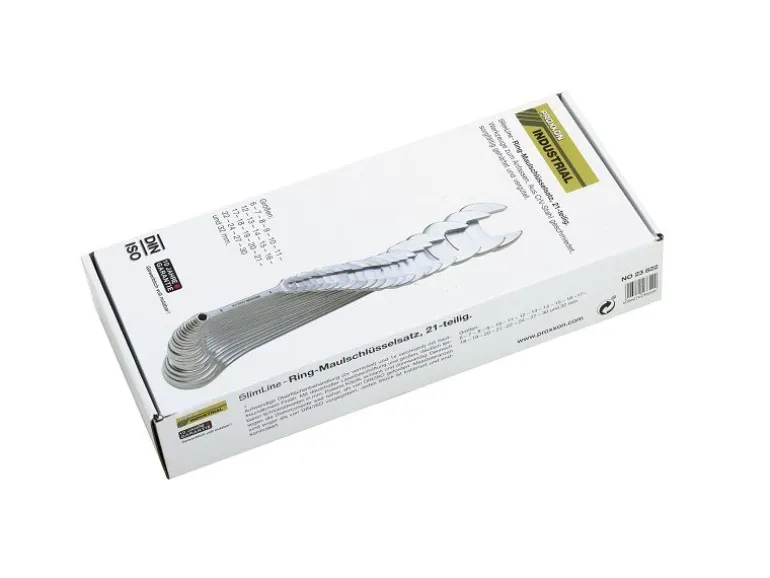 PROXXON SlimLine, to idealne klucze dla każdego warsztatu. Wykonane ze stali CrV, precyzyjne (bez ostrych krawędzi i kantów), hartowane i wciąż ulepszane. Z czytelnym oznaczeniem każdego klucza.