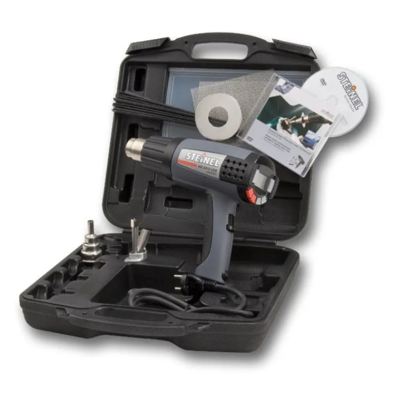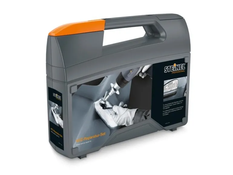 Samochodowy zestaw Steinel do naprawy uszkodzeń tworzywa sztucznego np.: PP, PP-EPDM, PE, PC, ABS, a nawet poliuretanu. Za pomocą specjalnej dyszy i temperatury 650°C siatka stalowa jest wtapiana w materiał macierzysty; spoiwo uniwersalne łączy obrabiane części dając wysoką wytrzymałość i elastyczność. Instruktaż w filmie poniżej