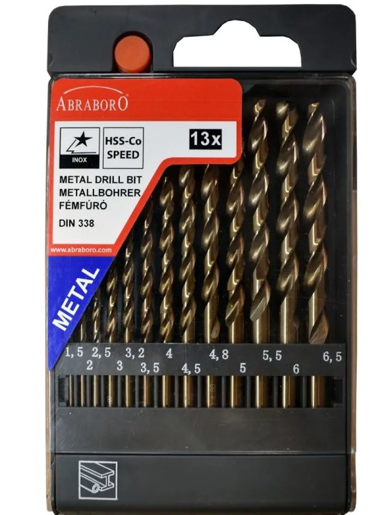 Zestaw profesjonalnych wierteł kobaltowych HSS-CO SPEED do metalu firmy ABRABORO.