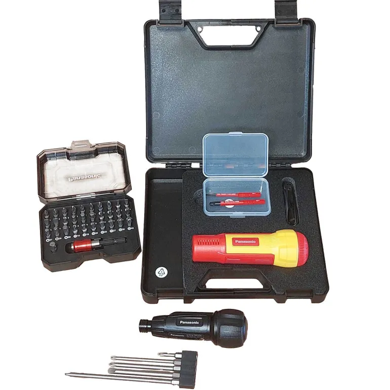 Akumulatorowy wkrętak Panasonic EYED11SA łączy w sobie bezpieczeństwo, wydajność i komfort użytkowania. To idealne narzędzie do precyzyjnej i bezpiecznej pracy. Wkrętak i bity w zestawie posiadają izolację zabezpieczającą użytkownika przed przypadkowym porażeniem prądem.