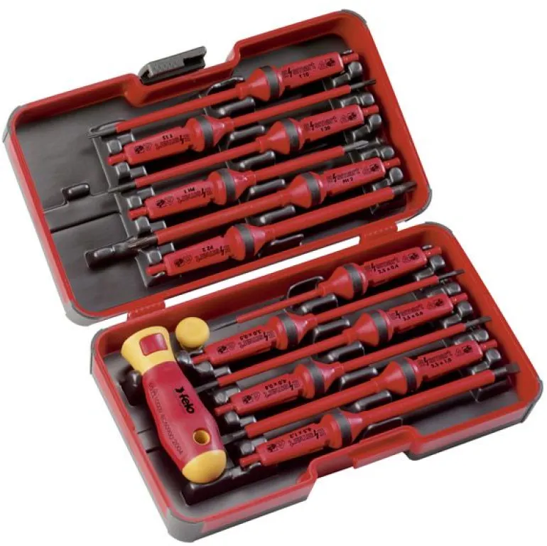 Odkryj kompaktowy zestaw wkrętaków FELO dla Elektryków – Twoje narzędzie do precyzyjnej pracy! Zestaw gwarantuje maksymalny poziom bezpieczeństwa i komfortu pracy. Każda klinga została indywidualnie testowana przy napięciach do 10 000 V zgodnie z normą DIN EN 60900. Całość zapakowana jest w trwałym pudełku z tworzywa, które umożliwia szybki transport i łatwą identyfikację narzędzi.