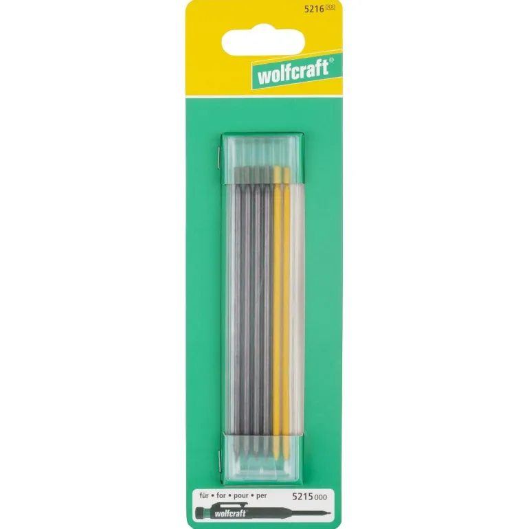 Jeden zestaw zawiera sześć zapasowych wkładów o Ø 2,8 mm i długości 120 mm do ołówka do głębokich otworów (np. wolfcraft nr art. 5215000)
