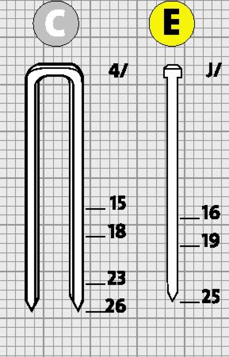 • obsługa sztyftów typ E (J): 16 – 25 mm